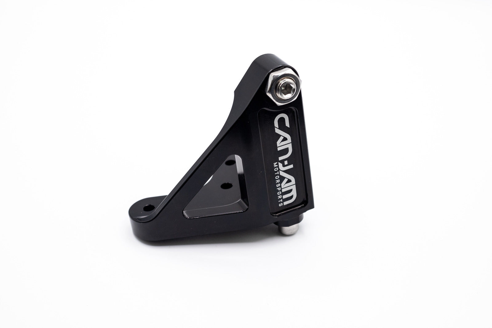 The CJM Master Cylinder Brace is CNC machined from a solid piece of 6061-T6 billet aluminum, chosen for its excellent strength-to-weight ratio. We designed it with strategic material removal, including lightening cuts and drilled holes, to reduce weight while maintaining the necessary stiffness and structural integrity. This approach ensures the brace is lightweight yet capable of handling the forces exerted during braking.